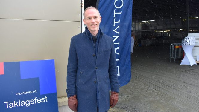 Taklagsfest för Pananottis nya logistikfastighet i Mölnlycke utanför Göteborg.