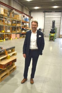 — Inför varje nytt projekt tittar vi på kundens specifika behov och sedan skräddarsyr vi en lösning. Det gör att serierna blir ganska små, oftast max 20-30 fordon, säger Jörgen Lindgren och berättar att man levererar allt från gaffeltruckar och smalgångstruckar till plattformar och dragtruckar, vilka har lyftkapaciteter från ett par ton upp till 65 ton och som mest kan nå upp till 11 meter. Givetvis erbjuder man kunderna en mängd olika batterilösningar och navigationssystem.