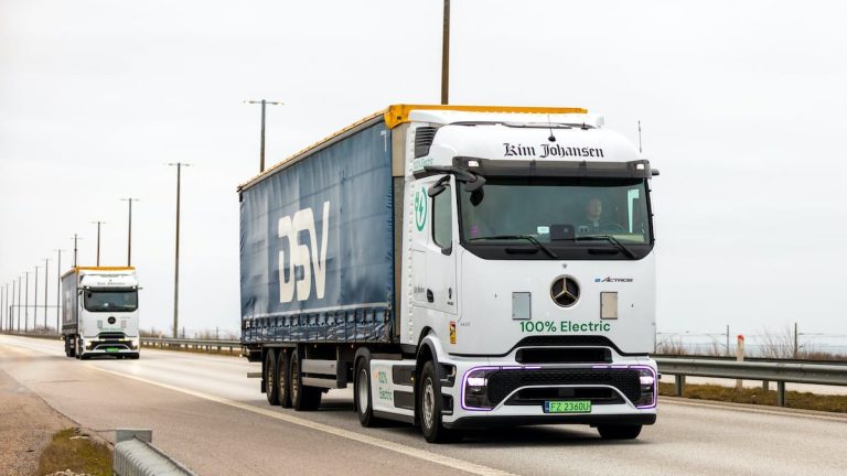 Två eldrivna tunga lastbilar sätts in mellan Skåne och Jylland.