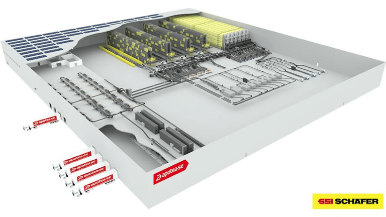Enligt SSI Schäfer är planen att skapa en ”högautomatiserad lösning som kombinerar flera banbrytande tekniker och som kan växa tillsammans med onlineapoteket i framtiden”.