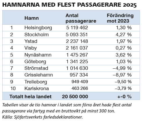 En annan storhamn som hunnit redovisa siffror för 2025 är Stockholms Hamnar, som ju inte är en utan flera hamnar — nämligen hamnarna i Stockholm (Stadsgården, Värtahamnen och Frihamnen), samt Kapellskär, Nynäshamn och Norvik.