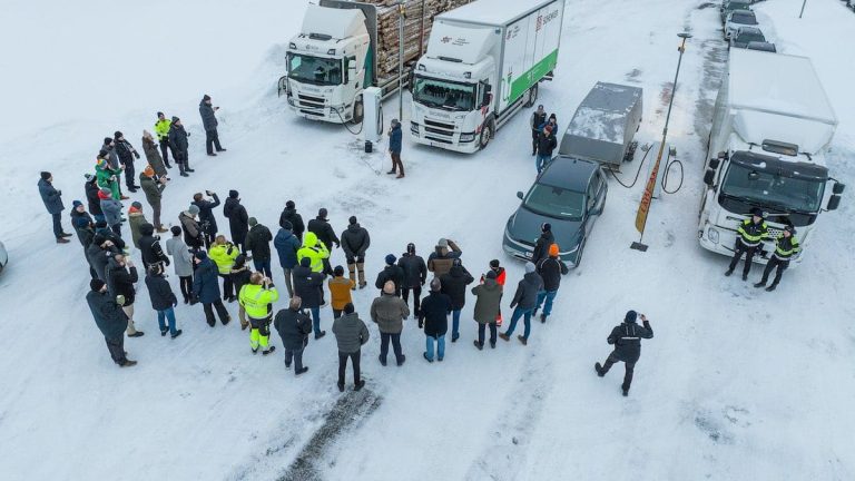 Umeås första publika laddstation för tunga fordon invigd vid knutpunkt för lastbilstrafik.