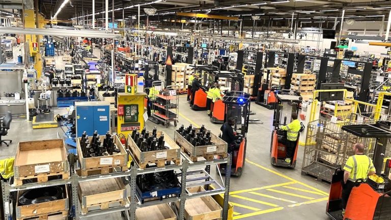 Trots tuffa tider för truckförsäljningen — något som du kan läsa mer om i kommande nummer av Transportnytt — storsatsar Toyota Material Handling på sin truckfabrik i Mjölby.